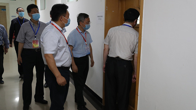 由于学院场地受限,今年的研究生在线复试安排在第7教学楼进行。上午9点半,党委书记李旭锋、副校长靳玉乐一行来到复试现场,详细了解了学院复试准备工作情况,查看了正在进行的线上复试工作,对学院的精心准备给予了高度肯定。希望学院进一步贯彻落实好新冠肺炎疫情防控和开学复课各项工作,发扬农生院优良传统,精心组织,严肃纪律,确保招生复试和各项工作稳中求进。