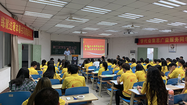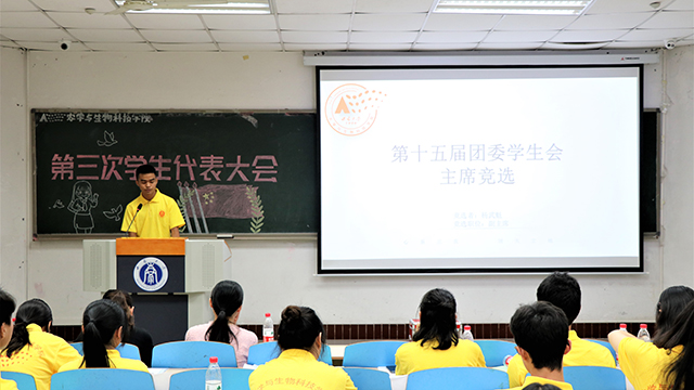 下午的会议分为学生代表大会和学委会会议两个部分。大会在两点零四分开始,会议由邓艳老师主持,首先由赵冬铃同学首先宣读第三次委员会委员名单。其次,表决《农生于生物科技学院第十四届学生会工作报告》等三份文件,所有学生代表就加强学风建设、团员推优依据的成绩时间修改等五个修改内容进行了全面的讨论和表决,最后所有议项皆以半数以上赞同通过,大会顺利闭幕。