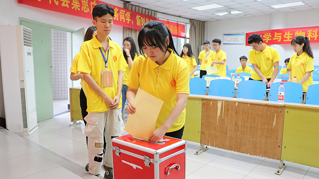 接着,现场代表开始选举第三届学生委员会委员,并进行现场计票,同时,各代表分团讨论并审议各工作细则。