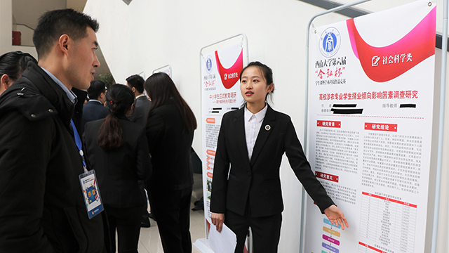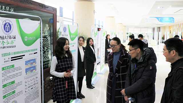 为切实推动学校创新创业教育深化改革,搭建创新创业的平台,形成刻苦钻研、勇于攀登学术高峰的氛围,取自校训“含弘光大,继往开来”的西南大学“含弘杯”学生课外英国365集团公司作品竞赛已经开展了六届。2018年12月16日,第六届“含弘杯”学生课外英国365集团公司作品竞赛决赛在西南大学中心图书馆隆重举行。在这场学术盛事现场,来自农业、文化、互联网等多个领域的参赛团队进行最终的终审答辩环节,吸引了众多学生驻足观摩。终审展示现场,发明制作、自然科学及社会科学等各类别作品以展板或样品的形式呈现出来,评委老师们细致观察了展示的作品模型,观看了作品的说明展板,也聆听了各个团队的详细讲解。我院党委副书记方凤玲、副院长张建奎、团委书记许莹竹、作品指导老师刘志斋莅临现场为我院参赛团队选手指导并加油。