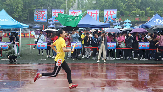 从暴晒不止到暴雨如倾,极端的客观环境下,农生的体育健将们一次次惊艳赛场。赛道场上快如闪电,沙坑跳台上一跃而起,力量与速度相合,比拼与团结相协,运动员们尽情释放自己的热血,在农生这方天地驰骋。