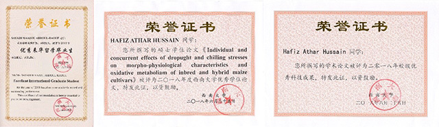 另据悉,我院1名留学生的毕业论文被评为西南大学2018年度“优秀学位论文”及校级“优秀科技成果”。