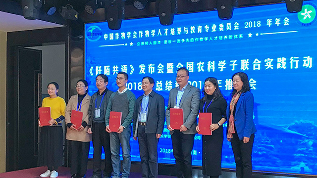 24日下午,《阡陌共语》发布会暨全国农科学子联合实践行动2018年总结会和2019年推进会、青年学者论坛、青年教师教学技能大赛同时进行。在全国农科学子联合实践行动2018年总结会上,播放了全国农科学子联合实践行动2016年—2018年纪实短片,并由华北、东北、华东、华中、西北、西南、华南片区依次介绍片区联合实践行动特色工作和明年的联合实践行动计划,集体研讨了2019年全国农科学子联合实践方案和2019年《阡陌逐梦》的集体审稿工作。会上还对2018年联合实践行动的获奖团队、指导教师等进行表彰。我院赴重庆巫溪暑期社会实践小队和重庆武隆暑期社会实践小队被评为“2018年度全国农科学子联合实践优秀小队”,戴秀梅、徐鑫两位老师被评为优秀指导老师、许莹竹老师被评为先进工作者。