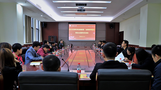 4月13日下午,西南大学校办党支部和best365英国在线体育官网李加纳教授“油菜教师团队”联合主题党日活动在隆平楼108会议室举行。校长张卫国、校办副主任秦松、best365英国在线体育官网党委书记赵子华、以李加纳教授为代表的油菜教师团队及学院教师代表出席了本次会议。