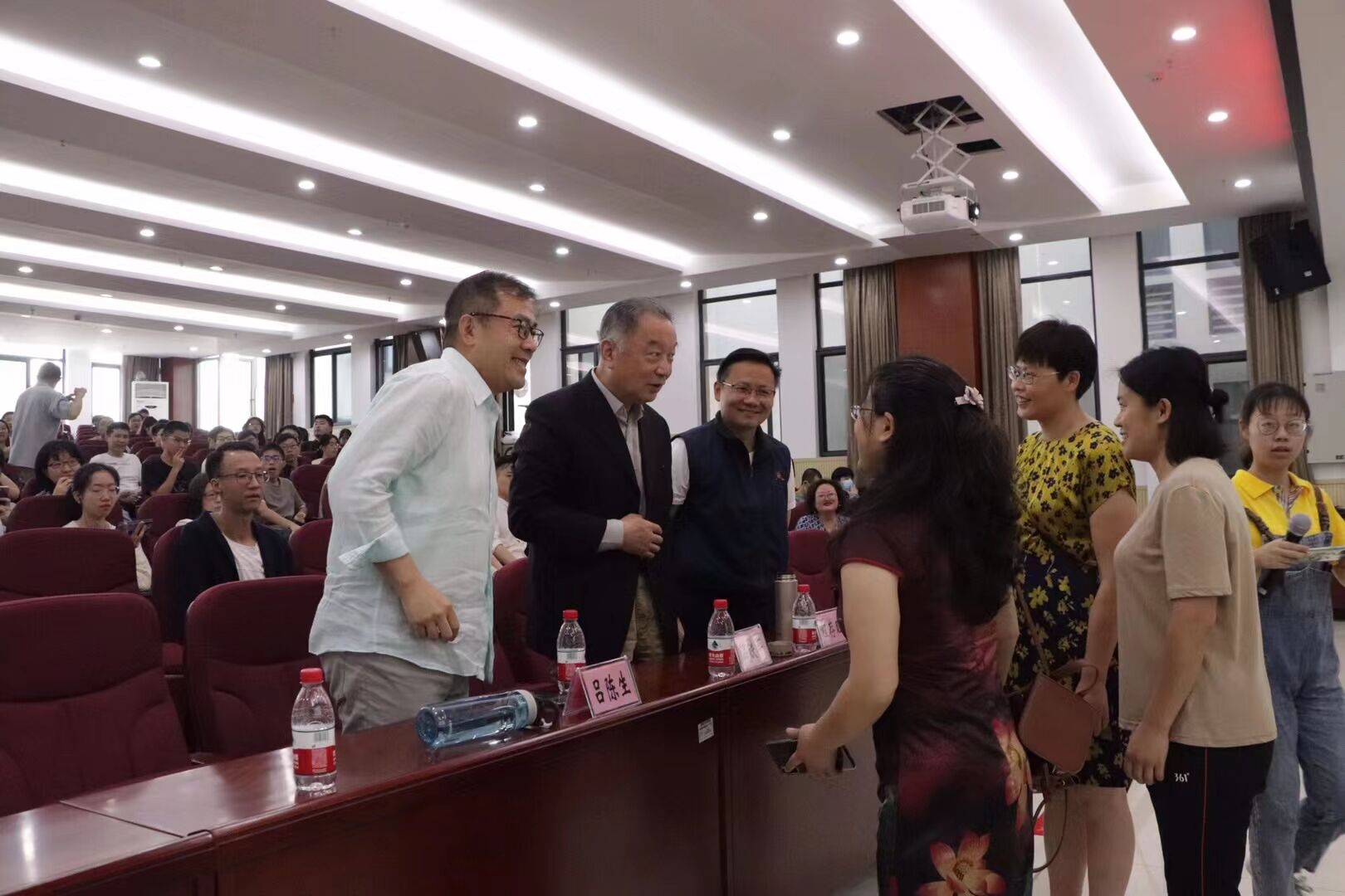 讲座后,温铁军教授与我院同学亲切交流,他关心学院农科365英国在线体育情况,要求青年学子,尤其是新农科学子要肩负起农业现代化的伟大使命,在面对这样一个复杂变局、国家战略转型之际要多一些深层次思考。现场一位同学表示从温铁军教授的报告和著作中学习到了思考中国农业出路不一样的方式,温教授感到欣慰,并激励广大学子多阅读、多实践,做中国生态农业的接班人。