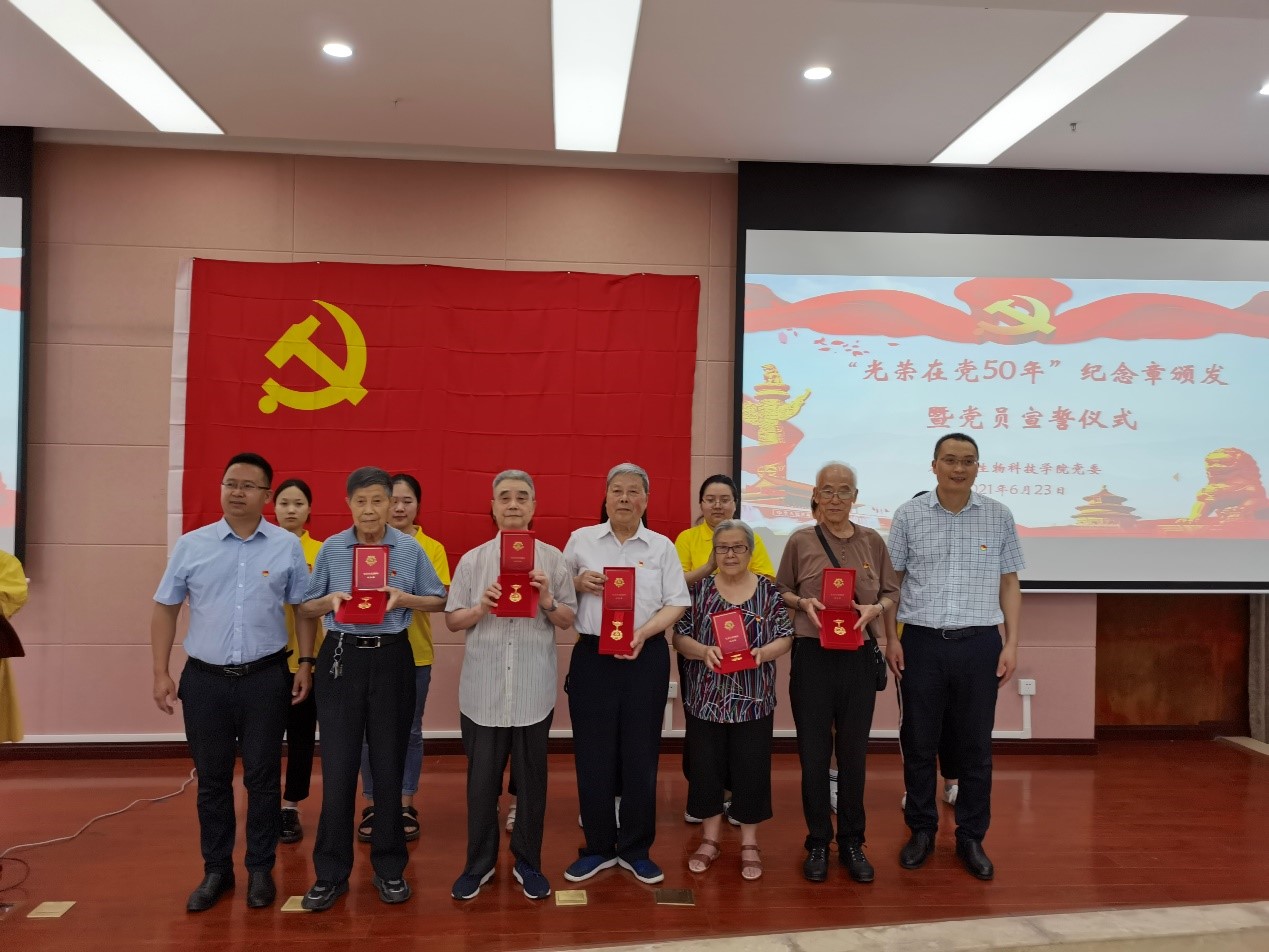 6月23日下午,best365英国在线体育官网党委“光荣在党50年”纪念章颁发暨党员宣誓仪式在隆平楼204会议室举行。获颁纪念章的老党员代表、学院党委书记阳义健、党委委员院长吕典秋、党委委员副书记郑莉佳、党委委员副院长卢坤、党委委员柴友荣同志、各学生支部书记、全体在校学生党员参加了仪式,仪式由郑莉佳副书记主持。