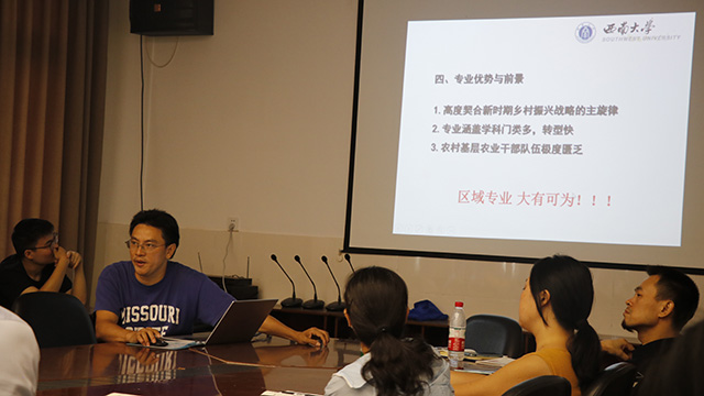 张建奎副院长进一步阐明了学院对农村区域发展专业的高度重视和大力支持:一是学院给予农村区域发展专业师生在科研方面的支持,如成立科研团队、支持学生创新项目等;二是学院为同学们配备了雄厚的教学资源,区域系主任吕老师和副主任袁晓辉老师分别从农学与经济类两个角度给予同学们指导,致力于农村区域发展专业的办学精品化。三是农村区域发展专业是省级一流本科专业,在乡村振兴的大战略下,农村区域发展专业就是服务乡村振兴,符合社会需求,受到了社会的高度认可。