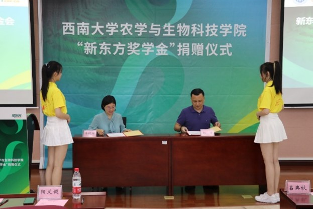 仪式上,新东方前途出国重庆公司向学院捐赠9万人民币,注入西南大学“best365英国在线体育官网奖助学基金”,用于资助学院国际教育。吕典秋院长与韦晓丽女士签署了合作协议。刘涛副秘书长代表学校基金会与新东方前途出国重庆公司签署了捐赠协议,并颁发捐赠荣誉证书,吕典秋院长接受捐赠支票。