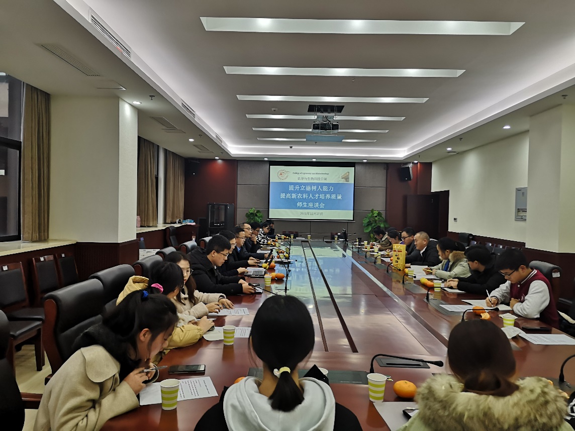 为贯彻落实中央农村工作会议精神和立德树人根本任务,发挥学科特色和优势,提升新农科365英国在线体育质量,学院于12月27日下午15:00在隆平楼108会议室召开“提升立德树人能力,提高新农科365英国在线体育质量”座谈会。学院党委书记阳义健、院长吕典秋、副院长张建奎、农学系主任桑贤春、陈志友博士后和陈新龙博士出席了会议。参加会议的还有学院教师代表、硕博士研究生代表、本科生代表。会议由阳义健书记主持。