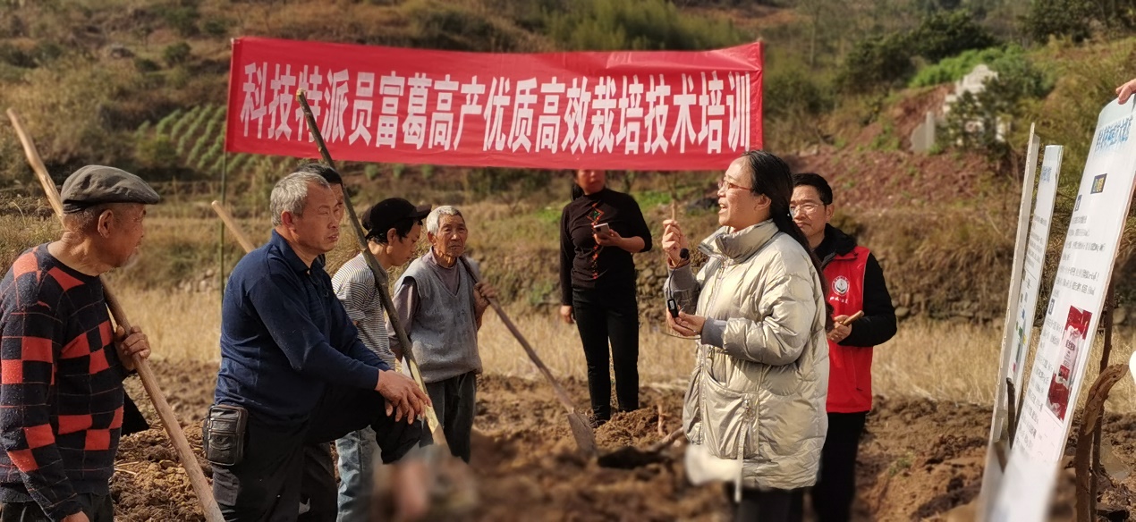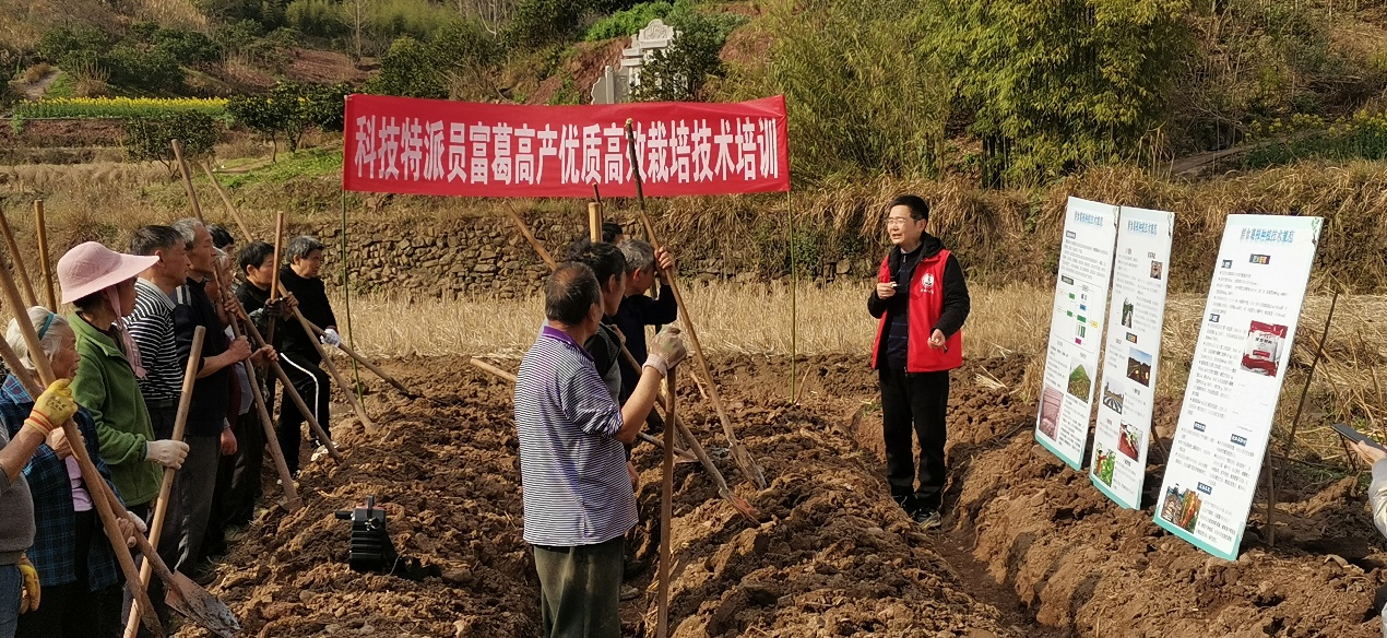 下午,在东升村开展了“科技特派员富葛高产优质高效栽培技术培训”会。宗学凤副教授向种植户介绍了富葛新品种和鲜食葛根富葛标准化种植技术规范,重点讲解了田间整治和幼苗移栽管理的技术要点,并在田间亲自示范、耐心指导,调动了种植户们的积极性,提高了他们的技术水平。