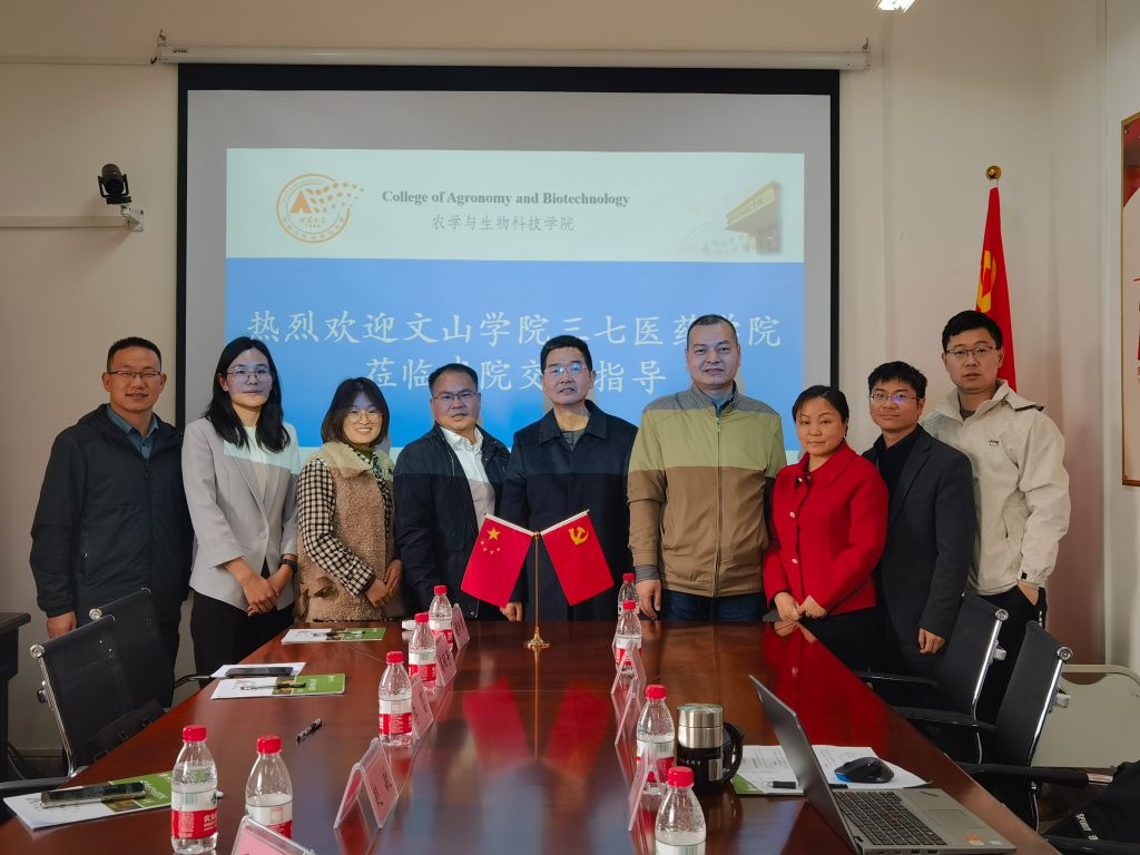 3月9日上午,文山学院人事处赵敏副处长、三七医药学院毛忠顺博士一行到学院交流教学工作。学院副院长张建奎、《分子生物学》《细胞生物学》《作物栽培学》《设施园艺》《世界农业》等课程授课教师参加座谈会。