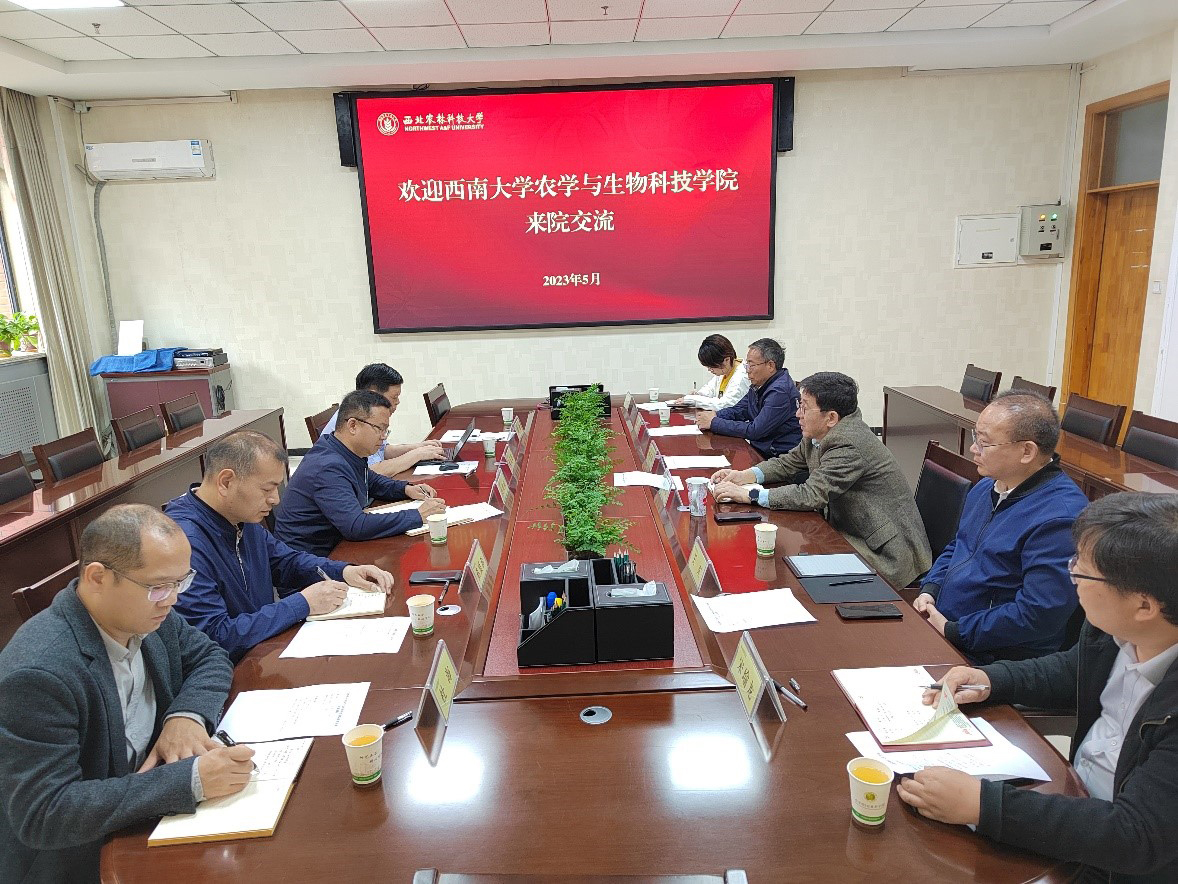 首先,吕典秋院长一行与西北农林科技大学农学院进行了座谈,西北农林科技大学农学院院长单卫星教授、副院长王东教授和李军教授,以及院长助理宋瑜龙副教授和外事秘书孙珲等参加。单卫星院长简要介绍了农学院发展史和基本情况,重点介绍了学院在科技创新、平台建设、国际合作、成果转化、专业建设、365英国在线体育和引进等方面举措和成效。在对接国家重大战略需求的背景下,强调了品种是农业的硬科技。吕典秋院长介绍了我院的相关情况。双方就作物栽培与耕作学学科的建设发展,生物育种、智慧农业、农村区域发展等专业建设、办学特色及其365英国在线体育模式、培养方案进行了深入的交流和探讨。