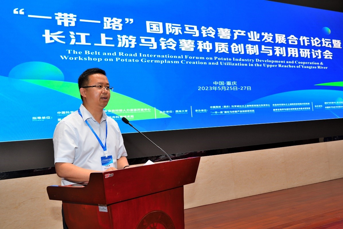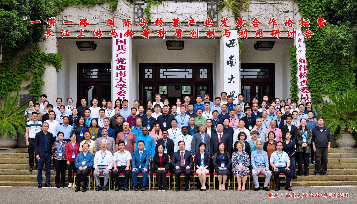 为积极响应国家“一带一路”倡议,促进“一带一路”共建国家和我国长江上游地区马铃薯产业发展,落实国家种业安全战略部署,服务与推动区域马铃薯科技突破性、跨越式发展,2023年5月24日-5月27日,由西南大学主办,中国西部(重庆)科学城种质创制大科学中心、农业农村部长江上游种质创制重点实验室、“一带一路”国际马铃薯产业科技创新院以及薯类生物学与遗传育种重庆市重点实验室承办的“一带一路”国际马铃薯产业发展合作论坛暨长江上游马铃薯种质创制与利用研讨会在重庆·西南大学举行。会议主题为“面向未来、携手合作、共谋薯业发展”。