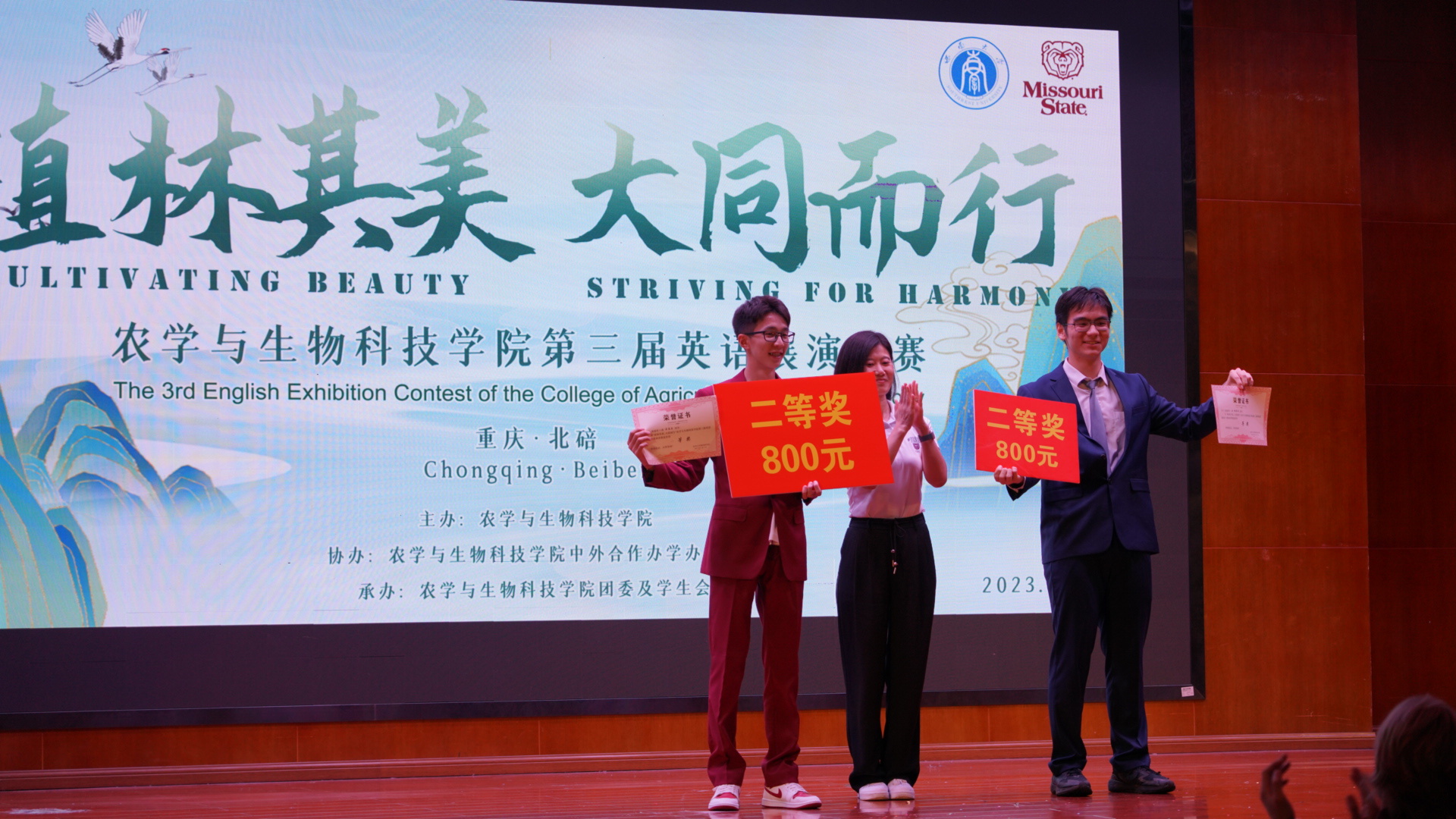 为丰富学生课余生活,推进校园文化建设,激发学生学习英语热情与创作灵感,提高学生英语水平,拓宽学生国际视野,best365英国在线体育官网开展了第三届英语展演大赛,大赛以“植林其美,大同而行”为主题,共设置了个人英语演讲、班级英语舞台剧展演两个赛道,从4月14日起,经过初试、复赛,最终有四个班级、六名同学入围决赛。6月2日晚7点,学院在南区学生活动中心107举行决赛,MSU副校长Brad、中国项目办公室主任刘丹丹、驻西南大学教师Kevin及Joshua、国际合作交流处副处长胡琳,学院院长吕典秋教授应邀出席并担任评委。