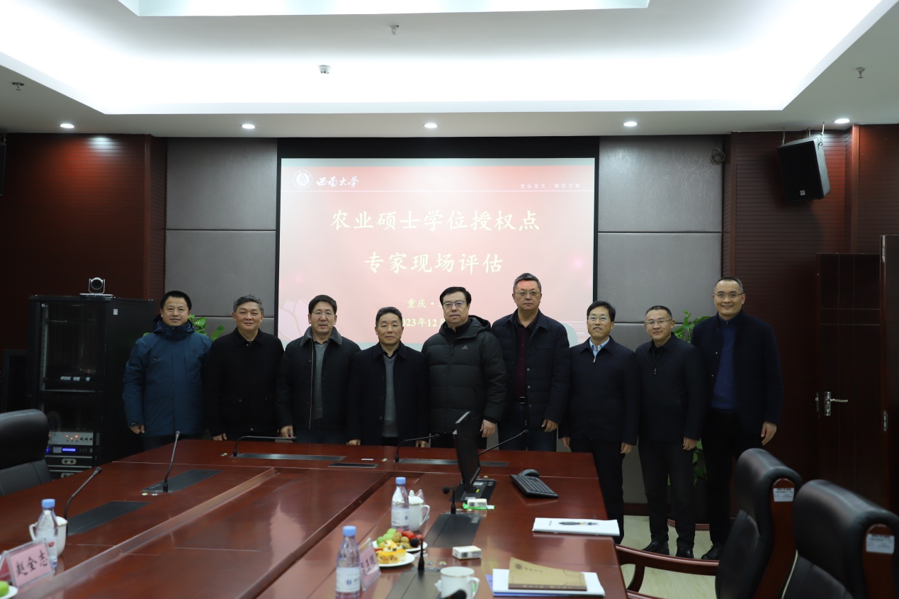 学校邀请了重庆市农业农村委袁德胜研究员、重庆市农业科学院刘剑飞研究员、四川农业大学黄玉碧教授、东北农业大学陈庆山教授、贵州大学赵全志教授、西北农林科技大学单卫星教授和重庆市农业技术推广总站陈松柏研究员担任本次评估会的专家组成员,由袁德胜研究员任组长。西南大学党委常委、副校长王进军、best365英国在线体育官网党委书记阳义健、学校发展规划与学科建设部、园艺园林学院、水产学院、动物科学技术学院、工程技术学院、经济管理学院、资源环境学院、植物保护学院、水产学院等院系部门领导班子、研究生秘书、青年教师和学生参加了现场评估会,会议由袁德胜研究员主持。