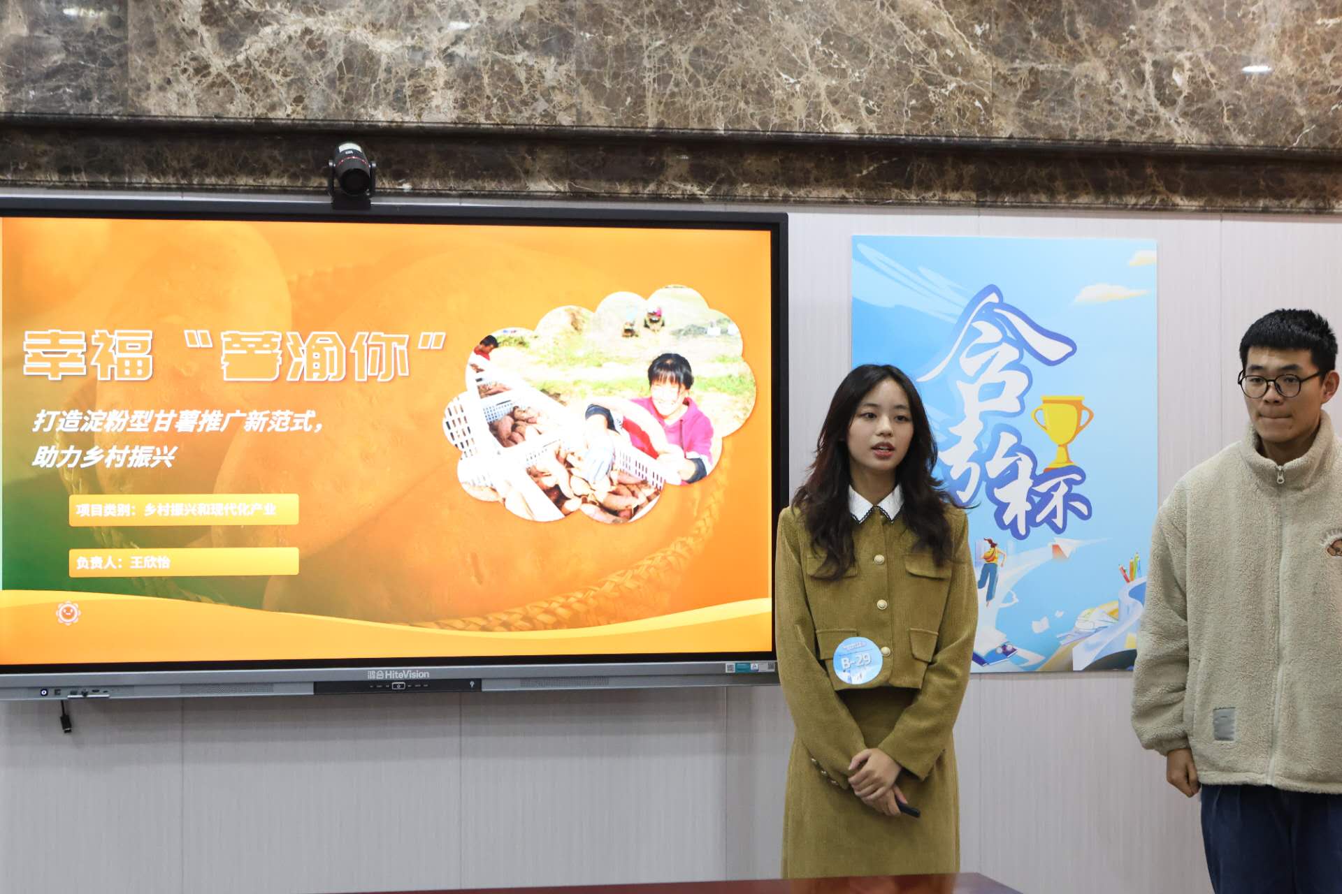 在学院遴选推荐、学校专家初审、学校终审答辩等环节,各团队以高度的专业素养、默契的团队合作,呈现出精彩绝伦的项目展示,每位团队成员的侃侃而谈都饱含对社会热点的洞察,对创业领域的了然,在这场激烈的角逐中迸发出青年的气魄与担当。无数的创新之星,即将从这里启航。在激烈的角逐中,我院项目《富农有葛——创制鲜食葛根种质芯片,打造乡村共同富裕“葛”引擎》斩获金奖,《幸福“薯渝你”——打造淀粉型甘薯推广新范式,助力乡村振兴》和《“弘明书屋”新时代心理及素质教育服务平台》荣获铜奖,《“紫茶小月,酥山弄霜”——紫苏创意衍生系列产品》和《CW(Country Walk)APP 企划》获优秀奖。
