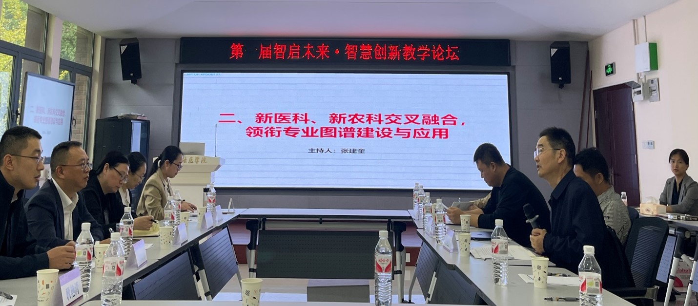 为充分领会数字化转型战略对我校“新农科”高等教育创新发展的重要支撑作用,更好地将数字技术有效融入本科教育教学,推动课程教学理念重塑、教学内容重组、教学模式重建和教学评价重构,提升教师的数字化教学技能和方法,推进我院植物科学与技术(中外合作办学)专业的专业图谱、智慧课程等教育教学建设向智慧化、数字化转型,10月25日,学院教师第二党支部组织植物科学与技术系教师和学院教师代表到重庆医科大学参加第一届“智启未来·智慧创新”跨学科教学论坛。本次论坛由重庆医科大学、四川大学、陆军军医大学和西南大学四所高校开展智慧课程建设的教研室共同参与。其中,参加此次教学论坛的我院教师队伍由张建奎副院长亲自带队,成员包括植物科学与技术系主任兼分子课程组负责人杜海教授,生物化学课程组负责人王楠教授,共课课程组负责人张凯教授及共课教师万华方、肖前林、曾健晏、蒋锐和张媞,生理课程组刘大军教授,以及农学系遗传学课程教师代表李超锋副教授。