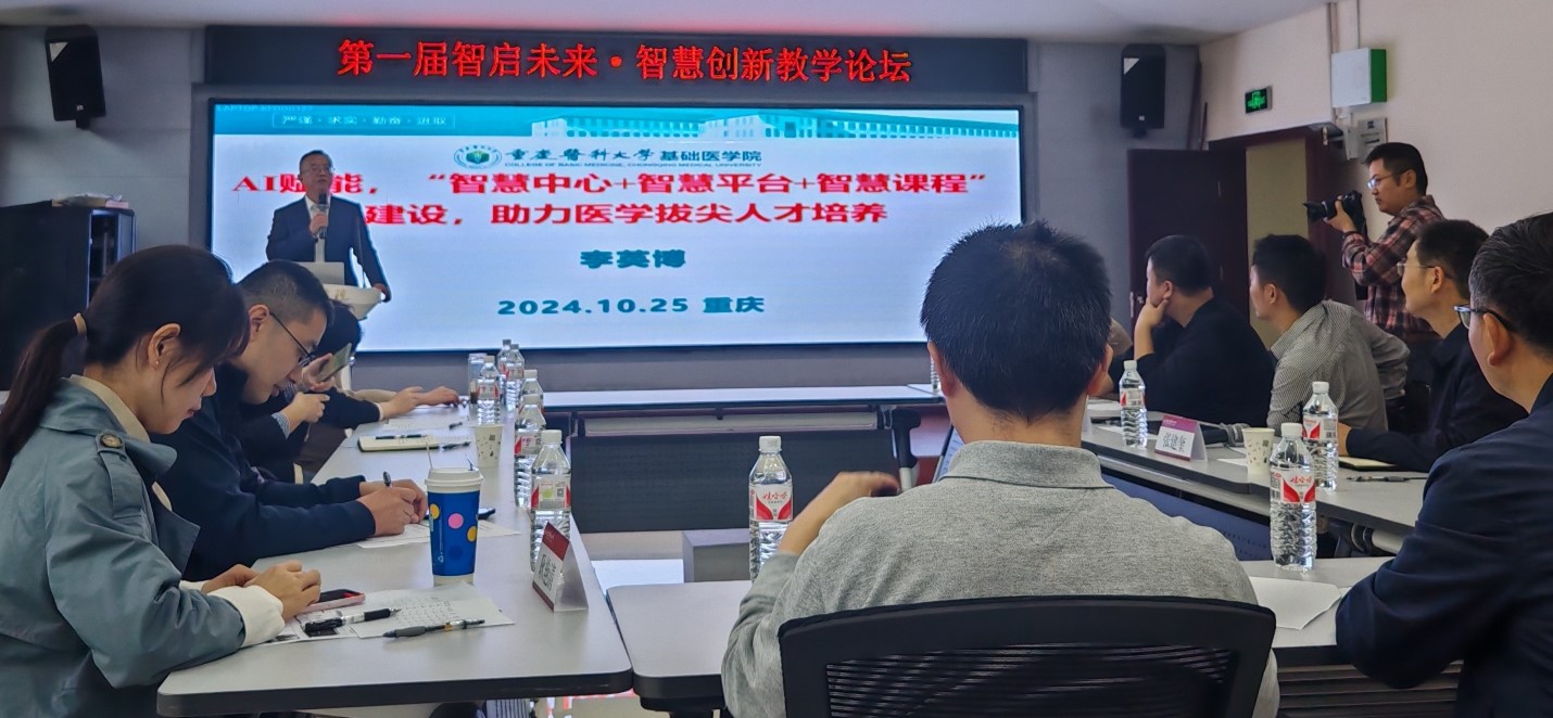 首先由重庆医科大学基础医学院李英博副院长致辞。随后,分别由重庆医科大学、四川大学、陆军军医大学的老师以“智启未来·智慧创新”为题,进行教育教学创新的学术报告。