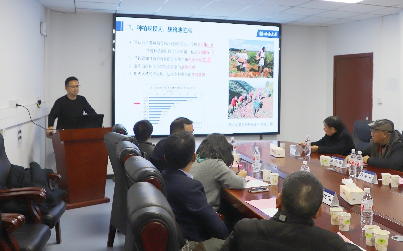 出席会议的有国家马铃薯产业技术体系首席科学家金黎平研究员、国家甘薯产业技术体系首席科学家李强研究员、国家马铃薯产业技术体系岗位科学家徐建飞研究员、南京农业大学植物保护学院副院长董莎萌教授、中国农业大学农学院何绍贞教授、国家马铃薯产业技术体系专家李育明研究员以及西南大学best365英国在线体育官网王季春教授等。西南大学科学技术发展研究院党委书记、科学中心主任黄斌及重点实验室骨干和研究生也参加了会议。