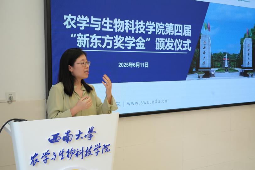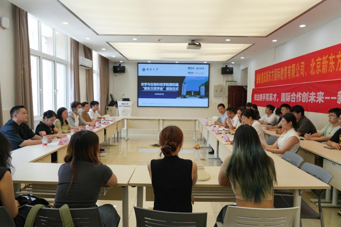 吕典秋院长热烈欢迎重庆新东方教育集团的各位老师来到西南大学,感谢新东方的慷慨捐赠与支持。他强调,学院一直致力于培养兼具家国情怀与国际视野的农科人才,“新东方奖学金”也重点用于奖励选择转校区的优秀学生,鼓励他们走出国门学习前沿知识,为社会发展贡献力量。自2019年与美国密苏里州立大学开展中外合作办学项目以来,学院累计派送41位学生赴美学习,38位学生正在世界名校继续深造,其中2位已经获得全额博士奖学金,转校区学生在海外学习成果亮眼。今年,学院将继续派送23名学生前往美国学习。