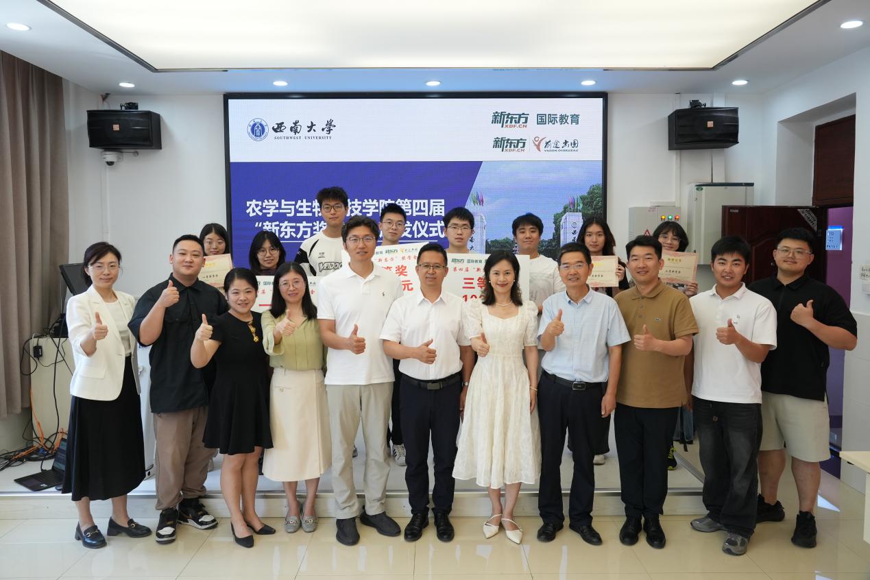 2025年6月11日上午,best365英国在线体育官网顺利举办第四届“新东方奖学金”颁发仪式。出席仪式的有重庆新东方国际教育总经理杨笑天,北京新东方前途出国重庆分公司总经理韦晓丽,学院院长吕典秋、副书记刘秋艳、副院长张建奎以及2022级辅导员、植科专业转校区学生。2022级辅导员白祯主持仪式。