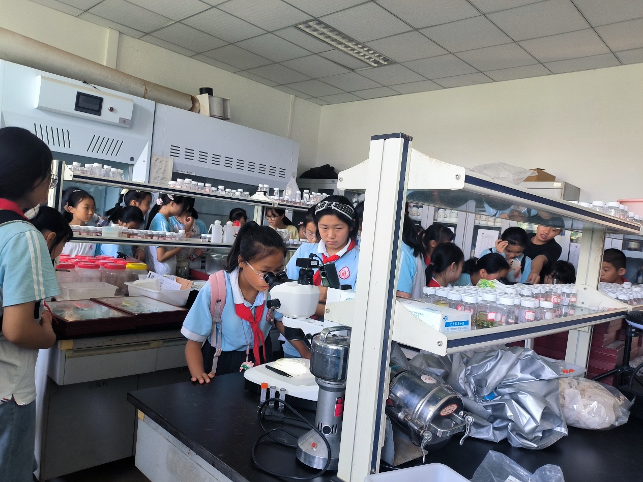 最后,小朋友们参观了实验室,开启"深度科研体验之旅"。他们在研究生的指导下亲自操作了简单的实验仪器,制作了昆虫标本等,让他们充分体验到科学实验的乐趣。