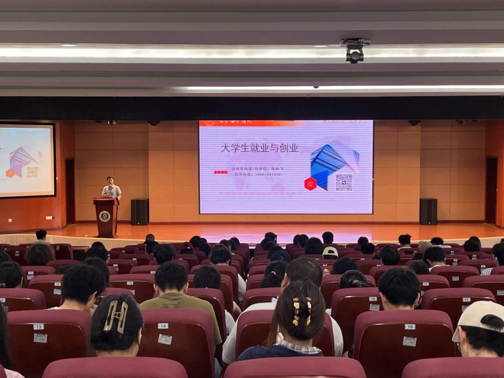 2025年6月13日,学院邀请四川国光农化股份有限公司市场部部长、国光商学院营销学院院长张林飞先生来访,围绕大学生就业、实习及产学研合作展开座谈,并面向学院2024级本科生开展《大学生就业与创业》主题讲座。座谈会由学院党委副书记刘秋艳主持。