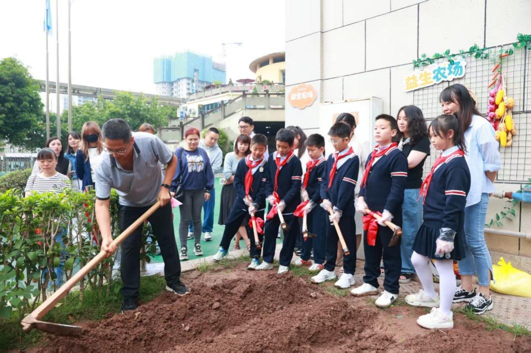 在随后的农耕体验环节,学院教师代表赵勇现场示范马铃薯种植,五年级师生与家长代表积极参与实践,并就种植技巧与注意事项与专家互动交流。现场气氛热烈,劳动的热情与求知的专注交织,勾勒出一幅生动的“耕学同行”画卷。