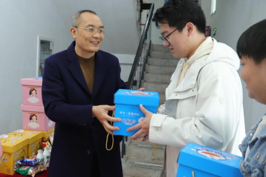 冷风虽劲,温情更浓。阳书记为学子们送上殷切嘱托与美好祝愿,他勉励同学们鼓足干劲,全力冲刺,以专注和坚持跑好“最后一公里”。他同时表示同学们遇到任何困难,学院都会及时提供支持。他特别叮嘱大家,要注重身体健康,及时调整心态,以最佳状态迎接考试。之后,老师们将学院精心准备的的“考研大礼包”送到学生手中。
