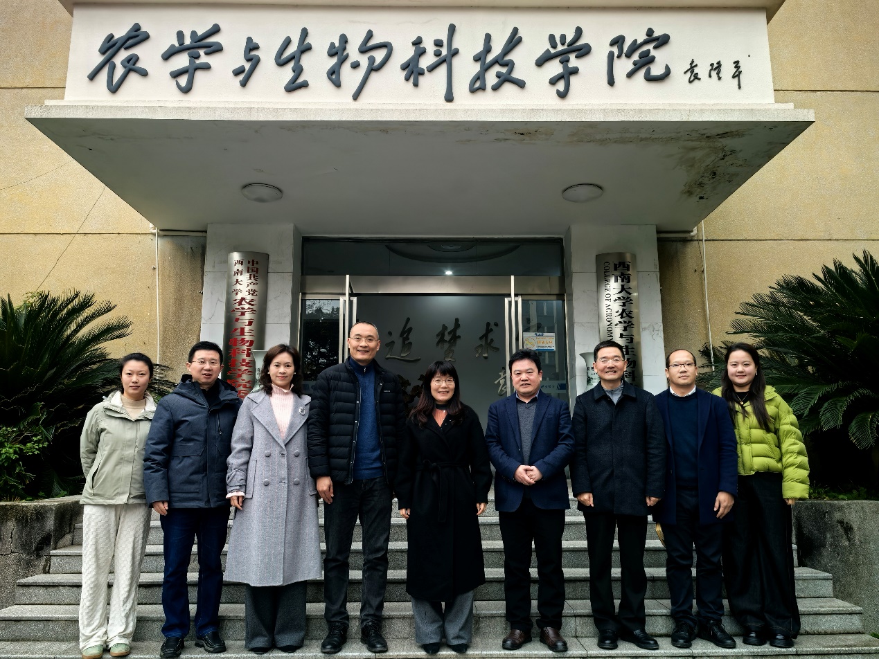 2025年12月22日上午,西南大学副校长赵玉芳率队到best365英国在线体育官网,就植物科学与技术专业中外合作办学项目开展专题调研。学校国际合作与交流处副处长褚修伟、党政办公室法律事务部副主任杨复卫随同调研。调研座谈会在棉研楼406会议室举行,由学院党委书记阳义健主持。学院党委副书记刘秋艳、副院长张建奎、植物科学与技术系主任杜海、辅导员代表高荣蓉及中外合作办学办公室张颖溢参加座谈。
