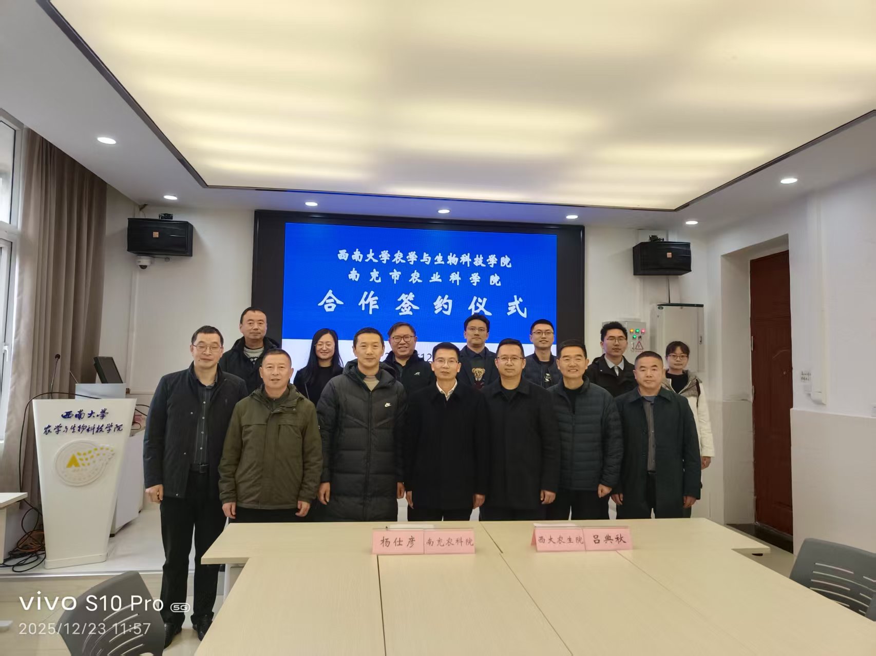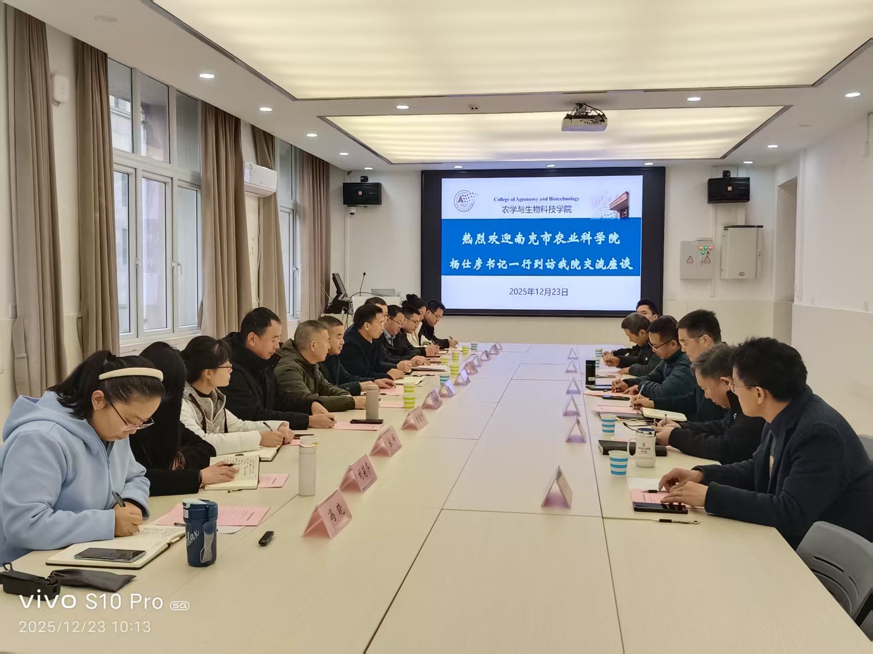 2025年12月23日,南充市农业科学院党委书记杨仕彦,副院长夏友霖、田露申率各科研团队负责人莅临我院,双方围绕实验室建设开展交流座谈。学院吕典秋院长、张建奎副院长、李云峰副院长及薯作、大豆、油菜、水稻团队相关负责人参加座谈。