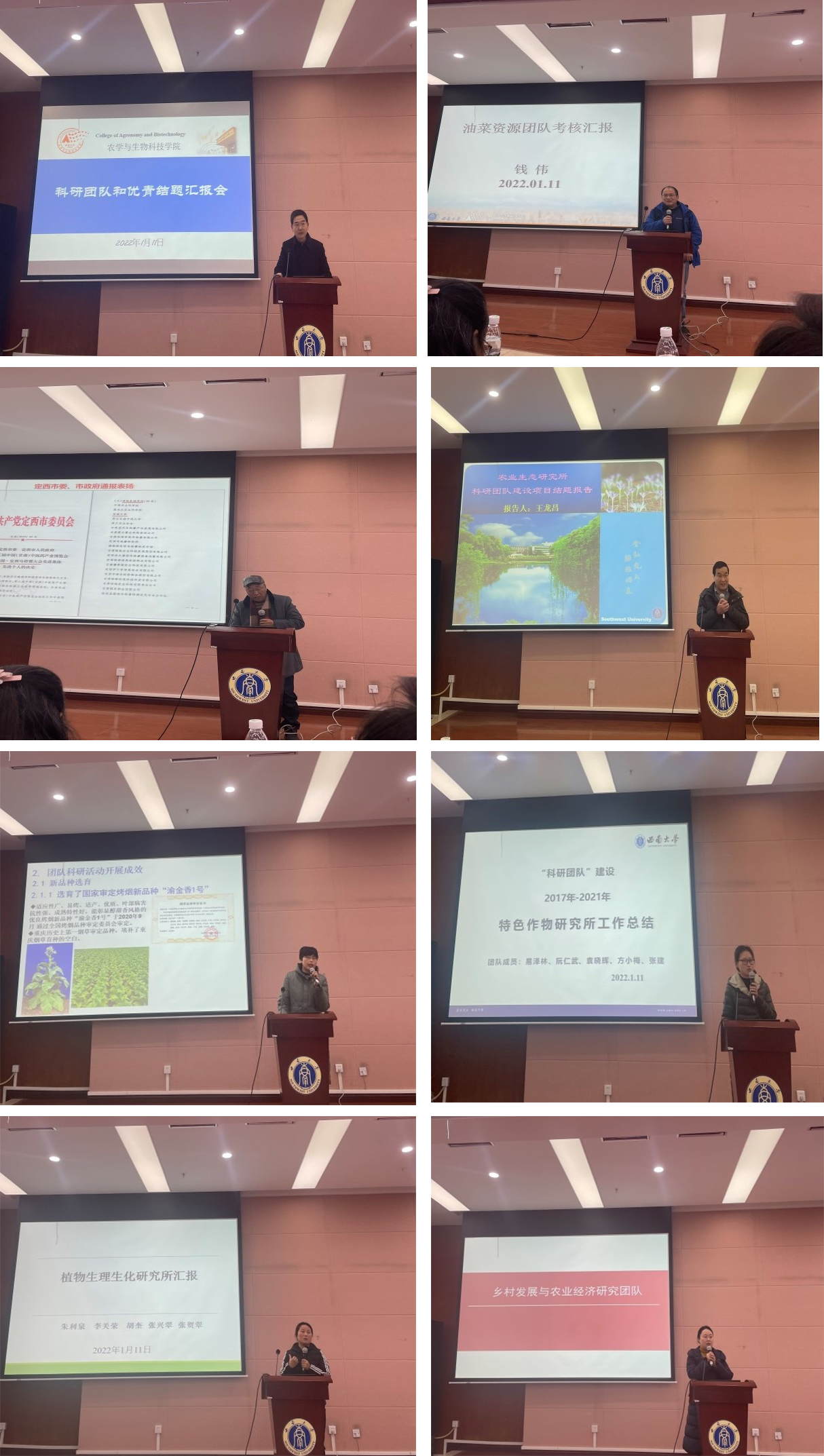 学院11个团队,水稻研究所、油菜分子育种研究所、棉花研究所、薯类作物研究所、油菜资源研究所、玉米研究所、农业生态研究所、烟草研究所、特色作物研究所、植物生理生化研究所和乡村发展与农业经济研究团队的负责人分别进行了汇报,总结了团队建设与365英国在线体育、科研项目、代表性研究成果、成果推广应用和社会服务、学术交流等情况,剖析了团队存在的问题,并提出了下一步工作计划和设想。