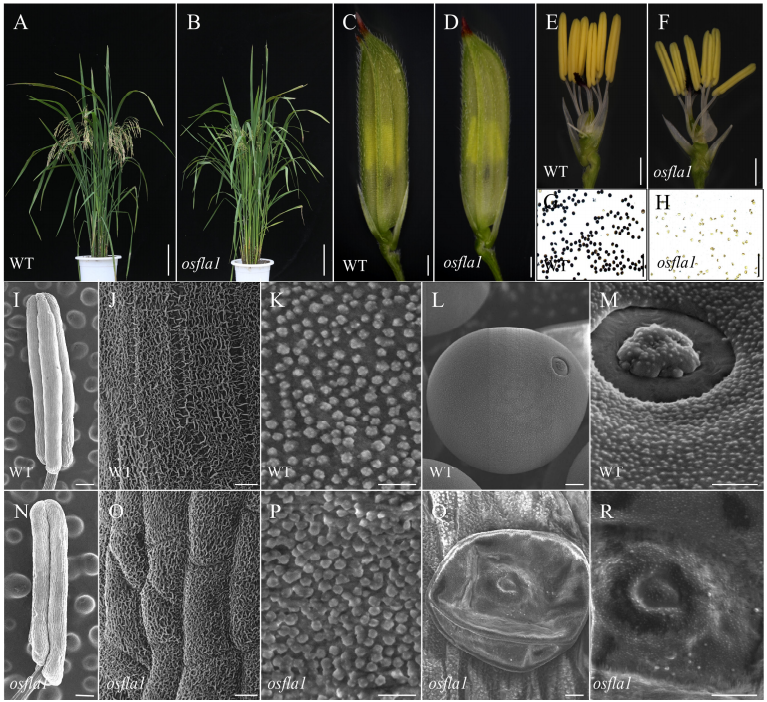 1. 阿拉伯半乳聚糖蛋白(AGPs)是一种富含羟脯氨酸的糖蛋白,存在于所有植物组织和细胞中,在植物生长发育中起着重要作用。目前关于类成束阿拉伯半乳聚糖蛋白(FLAs)参与水稻有性生殖的研究很少。在题为“OsFLA1 encodes a fasciclin-like arabinogalactan protein and affects pollen exine development in rice”的研究论文中,该团队分离鉴定出一个水稻隐性雄性核不育突变体osfla1。在osfla1突变体中,花药的乌氏体发育异常,且花粉的外壁内层表现出不连续断裂,由此导致花粉败育。