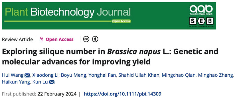 甘蓝型油菜是我国重要的油料作物,其产量及产量相关性状的遗传改良对于提高油菜产量具有重要意义。学院油菜分子育种研究团队近期在国际权威期刊Plant Biotechnology Journal(一区TOP期刊,IF2024 = 13.8)发表题为Exploring silique number in Brassica napus L.: Genetic and molecular advances for improving yield的综述论文。该论文从遗传、激素和环境等方面对油菜角果数的研究进行了系统综述,综合分析了拟南芥角果数和水稻穗粒数的遗传调控网络,提出了油菜角果数形成可能的遗传调控机制。