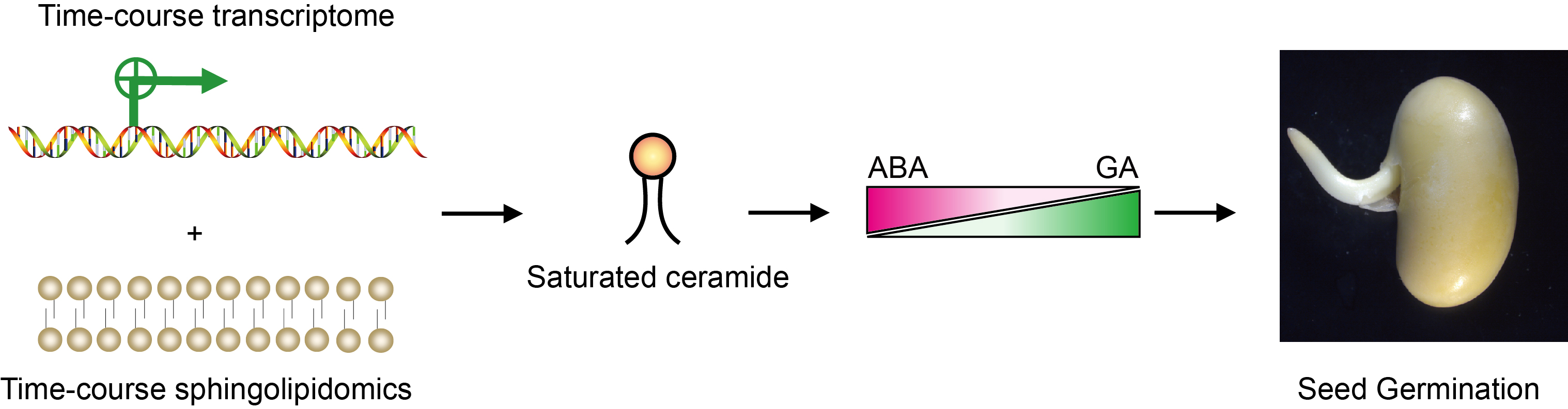近日崖州湾种子实验室主办的学术期刊 Seed Biology 在线发表了我院大豆团队题为“Saturated ceramide is required for seed germination in soybean”(https://doi.org/10.48130/seedbio-0025-0006)的研究论文。该研究通过整合时序转录组分析、鞘脂组学数据以及遗传学证据,揭示了简单饱和鞘脂通过调控种子中赤霉素(GA)与脱落酸(ABA)的比率,从而促进大豆种子萌发的分子机制。