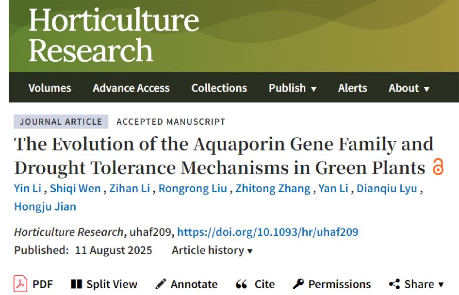 近日,西南大学薯类团队在Horticulture Research上在线发表了题为“The Evolution of the Aquaporin Gene Family and Drought Tolerance Mechanisms in Green Plants”的研究论文,首次在多维尺度上揭示了水通道蛋白(AQP)基因家族的进化规律和耐旱机制,为作物抗旱育种提供了重要的分子靶点。