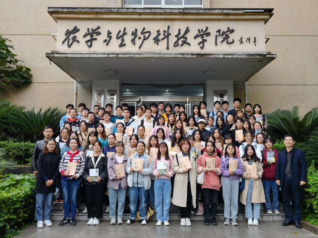 会议结束后,学院领导为实验班同学赠送了《袁隆平自传》《袁隆平传》《袁隆平的故事》书籍,寄语同学们要牢记袁院士八字箴言“知识、汗水、灵感、机遇”,心系三农,顶天立地,追梦求实,建功新时代新农科,并同大家合影留念。