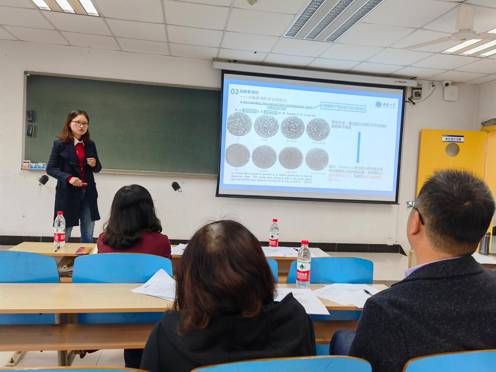 三位教师依次展开了种子学、植物生理学、农村发展概论课程15分钟的说课与20分钟的讲课。种子学是农学专业的核心课程,方小梅老师从中央经济工作会要点出发,引入讲课内容,强化课程思政引领,在传授种子的休眠机制知识的同时,引导同学们努力学习,为国家粮食安全和乡村振兴助力。植物生理学是植物生产类学生的必修课,采用线上线下混合式教学模式,姚贺盛老师通过启发式、探究式、讨论式、参与式等多样的教学手段,讲述了植物光合作用的概念和意义。什么是“高利贷”?“高利贷”为什么高?如何解决农村“高利贷”问题?王胜老师用生动形象的事例,深具感染力的语言,充分展示了讲课的艺术,调动了听者的情绪。