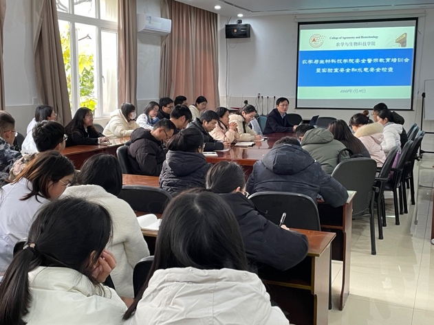 会议伊始,卢坤副院长首先就学院寒假实验室安全工作进行了部署,强调了假期实验室安全工作重点,并根据学校要求,对所有师生开展了安全警示教育培训会。培训会上通过对2021年高校实验室安全事故案例进行展示和分析,卢坤希望我院师生引以为戒,时刻绷紧安全的弦,确保实验室运行安全。