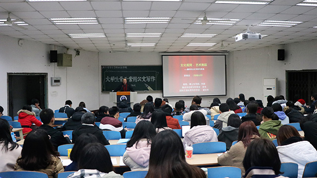 为提升我院团学骨干公文写作能力,规范各类公文写作格式,增强写作技能,学院第七期团校培训班于12月6日晚上7:00在 32教312教室举行第三次理论讲座,邀请到重庆市应用写作学会会长、国际汉语应用写作协会副会长、西南大学博士生导师袁智忠教授为团学干部做了“大学生骨干常用公文写作”专题讲座。