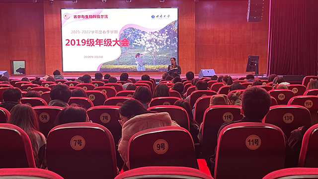 讲座结束后,2019级学生召开了新学期年级大会,许老师强调要充分消化讲座内容,思考自身特点、优势和不足,及早做好职业规划,朝着自己的理想努力奋斗。同时许老师对年级上学期学习成绩进行分析和总结,进行安全教育,重申各项管理制度,并对同学们新学期的学习生活提出新的期望,希望大家向着目标不断努力前行。