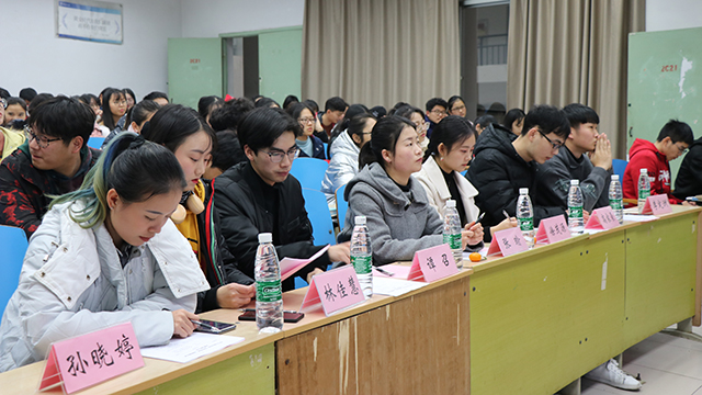 12月16日的初赛选拔面向第六期团校培训班全体学员,参赛学员自行准备课件及演讲稿,围绕“学习习近平新时代中国特色社会主义思想、庆祝改革开放四十年”相关主题进行阐述讲解,组内学员进行不记名投票,择优而进入决赛。21日下午,决赛邀请到了best365英国在线体育官网实习辅导员张瑜老师、中国特色社会主义理论宣讲团团支部书记高家毫、团委学生会上届主席徐茂媛、团委副书记谭召担任评委,全体团校成员与会观赛。
