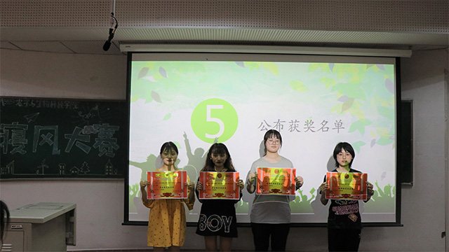 在比赛中每个参赛寝室的表现都十分的优异,在经过各寝室激烈的角逐、评委打分及成绩综合后,由楠园一舍423寝室获得“综合模范寝室”、楠园一舍414寝室获得“学习模范寝室”、楠园一舍406寝室获得“卫生模范寝室”、楠园一舍421寝室获得“纪律模范寝室”、楠园一舍405寝室获得“精神文明模范寝室”,其他寝室亦获得了寝风大赛提名奖。