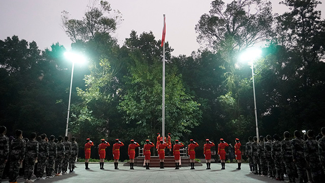 天还未亮,空气虽冷,但无法阻挡大家的激动的心情,踏着晨露的晶莹剔透,农生院的同学们已在国旗台集合完毕。本次升旗仪式由西南大学女子国旗班完成。七时许,旗手就位,出旗、升旗,伴随着嘹亮庄重的国歌声,五星红旗在晨光中冉冉升起,缓缓至顶。全体师生唱国歌、行注目礼,表达对祖国的深爱,对国旗致以最崇高的敬意。
