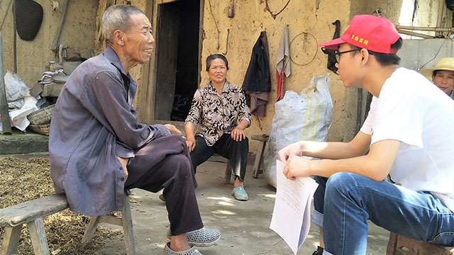 7月15日清晨,队员们分两组分别前往大华村的第10组、11组进行农户问卷调研。队员们细心询问,村民们耐心回答。调研期间,队员们还通过参观村民的房屋、农田等了解各贫困户的实际情况。