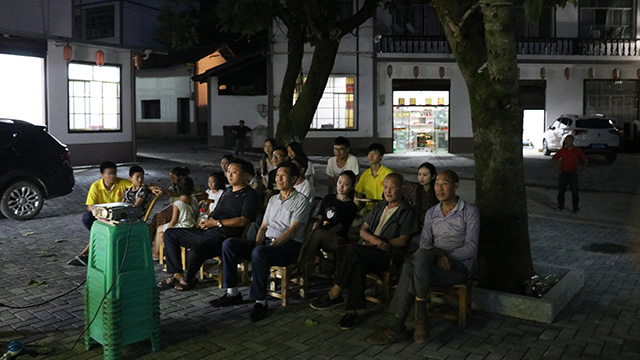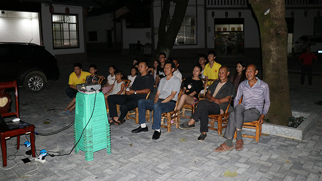下午17时许,队员们来到唐家大院内,在村书记的帮助下接通电源,把放电影的工作准备就绪。吃过晚饭,陆陆续续有不少村民赶过来,前来观看。队员们为村民们讲解起此次活动的目的和意义。晚上7时,放映正式开始。《厉害了,我的国》以纪录片的形式介绍了我国近五年在各个领域取得的卓越成就,展现了我国慷慨激昂的大国风采。影片中一个个震撼人心的场景,让所有在场群众热血沸腾、激情澎湃,也让大家对祖国的富强有了更加宏观的感受。观影群众大多为中老年人,边看边交流,发出阵阵感慨。一位姓何的大爷说道,看了影片才知道我们国家建设了这么多举世瞩目的“中国桥”、“中国路”、“中国港”。大家也纷纷表示,这五年来我们国家发展速度飞快、成绩傲人,作为一个中国人,感到由衷的骄傲。