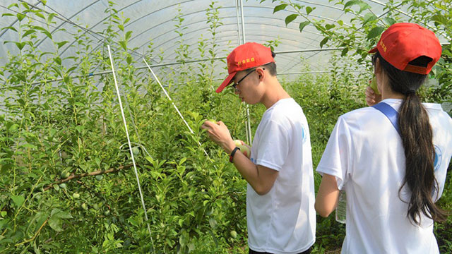 此后,实践小分队出发去往仙女山洋瑜农业生态示范园。此园区中种植了许多采用先进技术栽培的观赏性果树及作物,颜色鲜艳,味道鲜美,可供采摘。且洋瑜生态园特设无土栽培技术教学点及中小学社会实践教育基地,开放农业文化长廊,提倡创新精神与绿色、有机农业的开发。实践队员们认真观摩学习其栽培技术,开阔视野的同时也增强了专业知识储备。