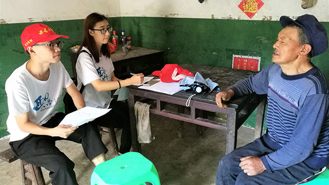 7月16日一大早,小分队便开展了调研。在寻找农户的过程中,队员们发现有许多人来这里避暑。由于地势较高,气候凉爽,木根村的清晨自然成为村民、游客纳凉散步的不二之选。队员们就这个现象进行讨论,并记录入问卷当中。