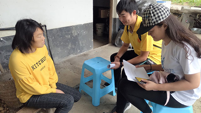 调研工作有序进行,队员们将问卷数据进行整理、记录及分析。根据统计,从木根村的主要经济作物、观光植物、饲养动物、农家乐等方面的调研结果分析可知,村民的生活状况较为良好。但是,伴随经济增长的同时,数据显示的环境污染问题亦较为严重。