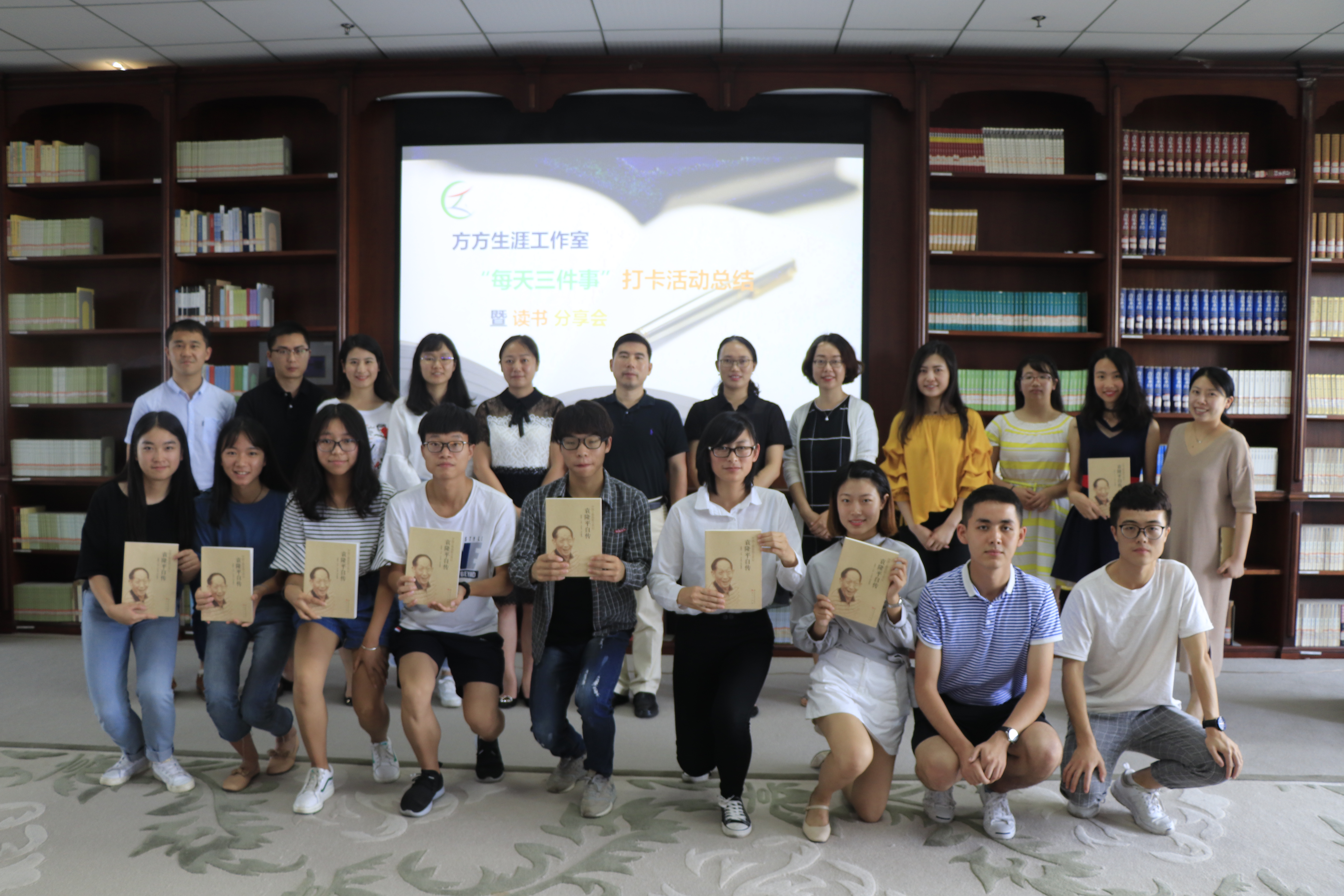 6月5日,方方生涯工作室“每天三件事”打卡活动总结暨读书分享会在中心图书馆九楼会议厅举行。工作室负责人、best365英国在线体育官网副书记方凤玲主持并作为主讲人就工作室运行情况作汇报展示。西南大学学生工作处副处长周翱、招生就业处副处长丁虹(挂职)、学生处吴姝老师、校2017年度工作室精品项目负责人、辅导员以及我院学生代表受邀出席活动。